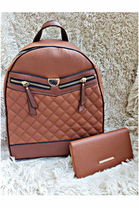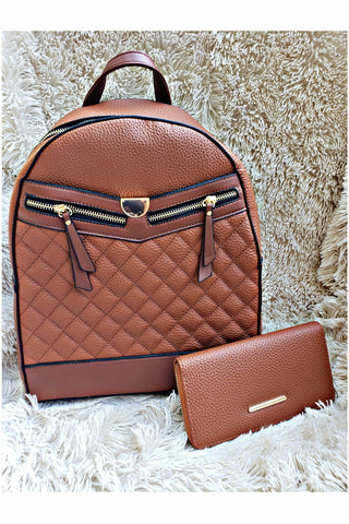 Boujie Bee Quilted Cognac Backpack/Wallet Set