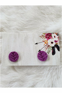 Purple Fishtail Braided Italian Leather Stud Earrings