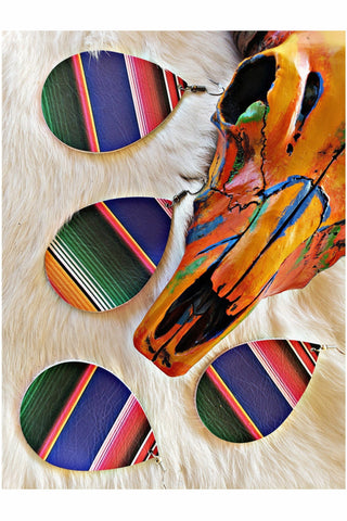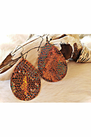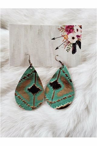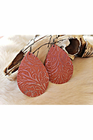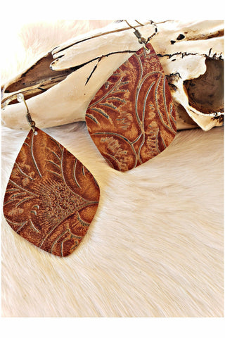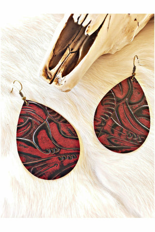 Navajo Aztec Tribal Embossed Chunky Leather Teardrop Earrings