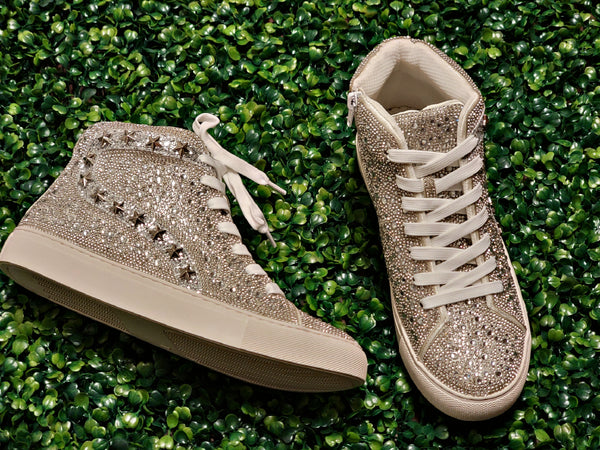 Corkys Flashy High Top Sneaker - Clear Rhinestones