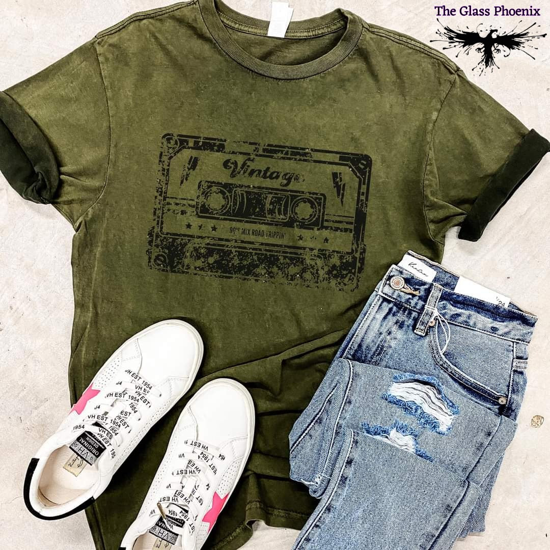 "Revive your 90's style with our Vintage Tape Tee! Featuring a retro mixtape graphic, printed with screen printed technology on soft 100% cotton. Perfectly unisex, with a Lane Seven crew neck. (Get ready to hit the road, road trippin' has never looked cooler)."